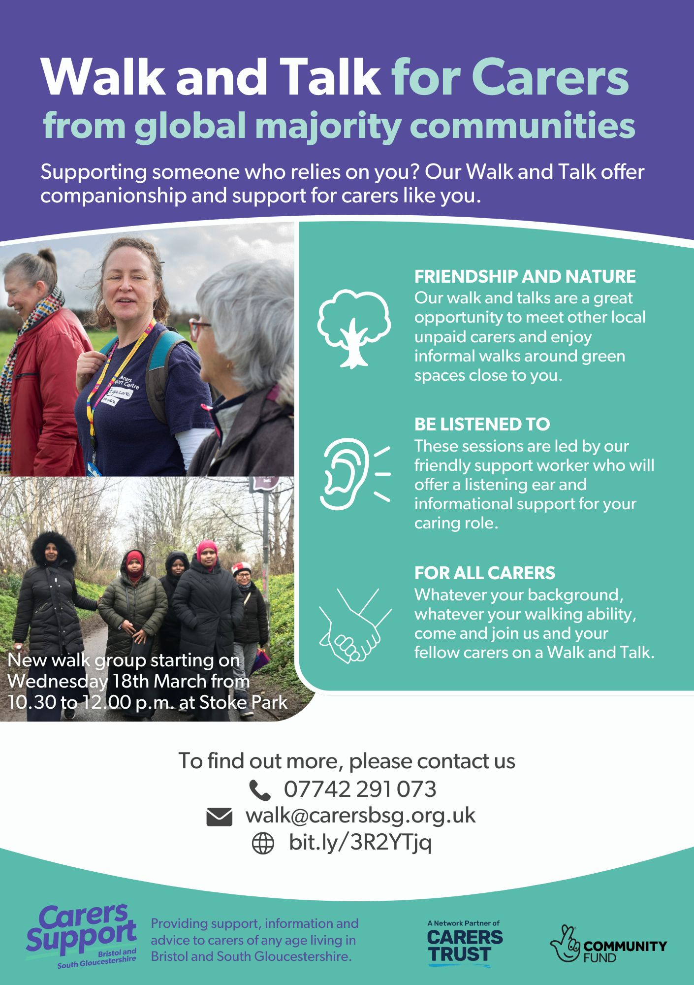 Walk & talk for carers from global majority communities, starting Wednesday 18th March